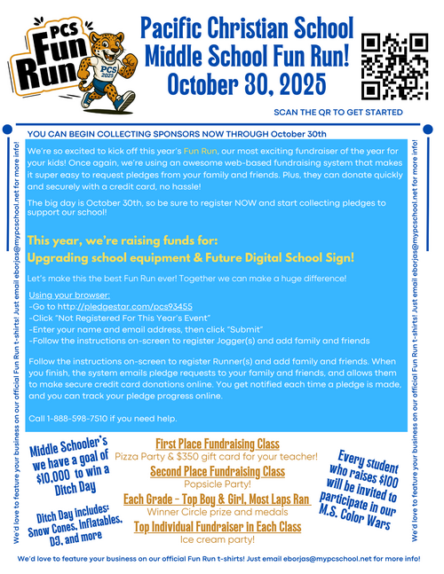 PCS Fun Run is set for October 30th! See below flyers for grade specific prizes and parties!